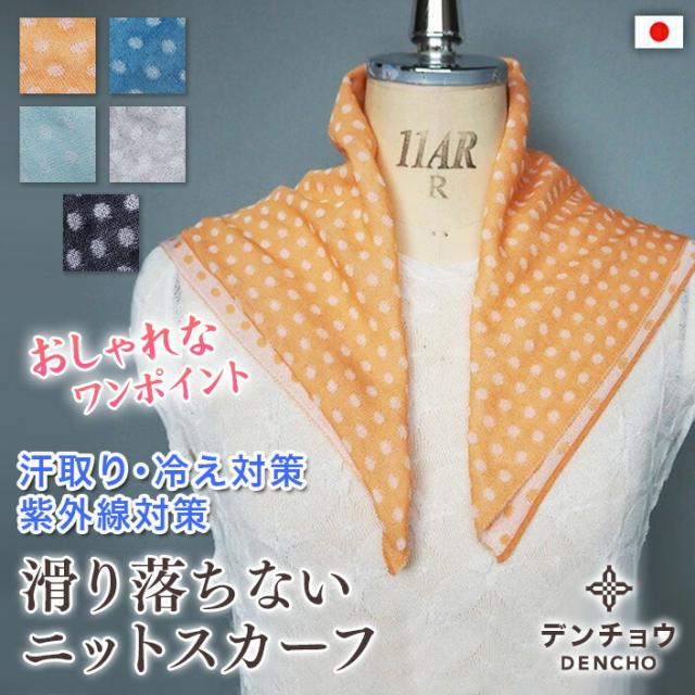 父の日 プレゼント スカーフ ドット【今まで無かった便利グッズ】【滑り落ちない】ネック ネックカバー スカーフ ストール マフラー 夏 汗止め uv カット 紫外線 冷房 冷え ニット 水玉 正方形 コットン 綿 ショート 日本製 小さい 薄手 おしゃれ レディース 可愛い 国産 汗