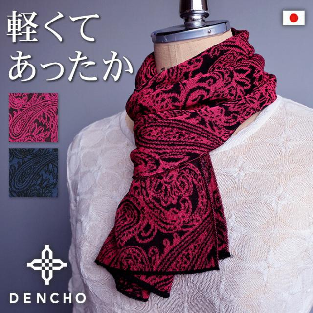 デンチョウ マフラー ニット ペイズリー柄 ストール 薄手 ふわふわ 秋 冬 レディース メンズ ネックウォーマー スカーフ 洗える あたたか 暖かい おしゃれ お洒落 かわいい 可愛い 日本製 洗える プレッゼント ギフト 防寒 首元 国産 オリジナル 洗える