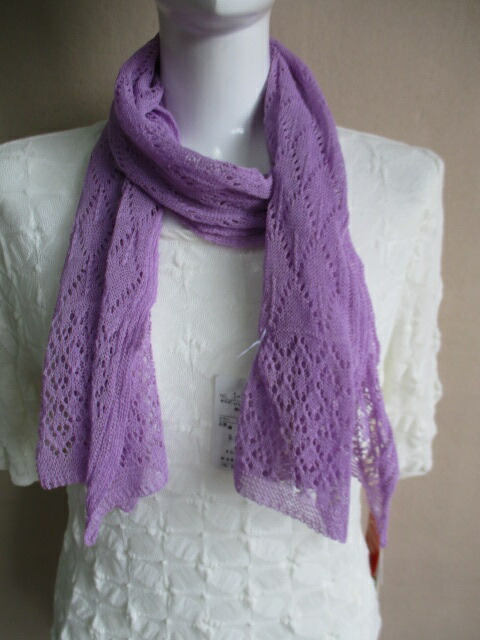 マフラー ストール アトピー 冷え 冷房 紫外線対策 洗えるコットン!吸汗性は本物!さらりコットンニットマフラー 綿100% 透かしダイヤ柄ストール 134モーブ スヌード レディース メンズ 小さい 薄い 薄手 かわいい 可愛い おしゃれ 日本製 国産 綿