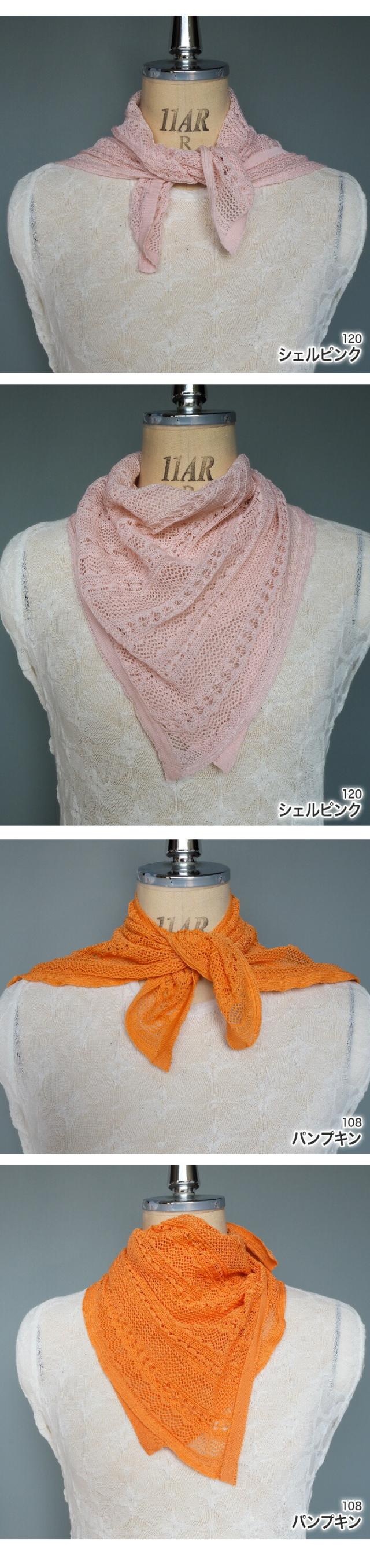 デンチョウ レース ストール スカーフ マフラー ネック ニット ネックカバー ネックウォーマー ネッカチーフ 春 夏 正方形 ショート 短め コットン 汗取り UV 紫外線 冷え 冷房対策 滑らず巻きやすい 透かし ストライプ柄 綿 ポリ 薄手 可愛い おしゃれ 日本製 プレゼント
