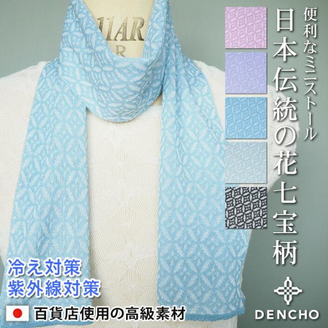 デンチョウ ミニ ストール マフラー ネック スカーフ コットン 花柄 UVカット UV 紫外線 日焼け 冷え 冷房 日本製 日本伝統 和柄『粋な』花七宝柄 小さめ 短め ミニストール 綿 レディース メンズ ニット 小柄 薄手 夏 プレゼント ギフト