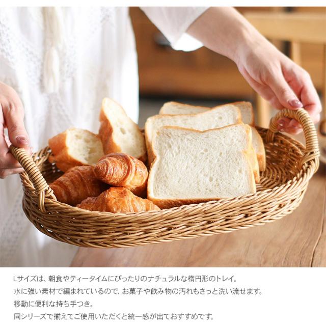 Lサイズは、朝食やティータイムにぴったりのナチュラルな楕円形のトレイ。