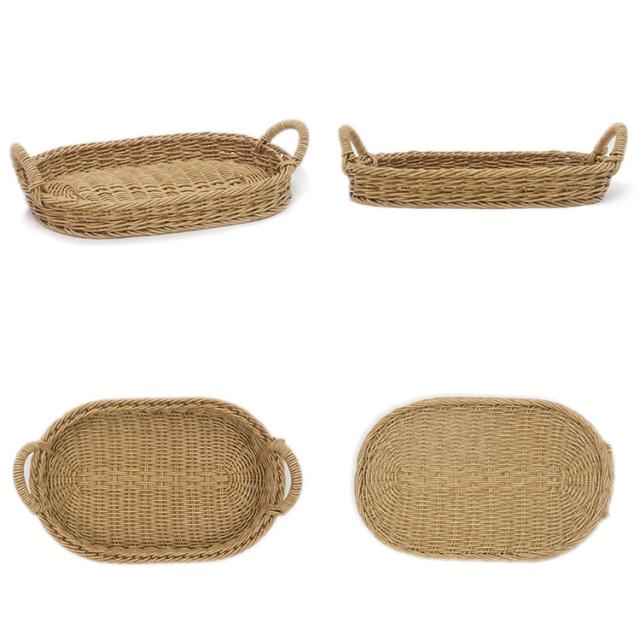 水に強い天然素材で編まれたような自然な温かみのあるオーバルトレイ。