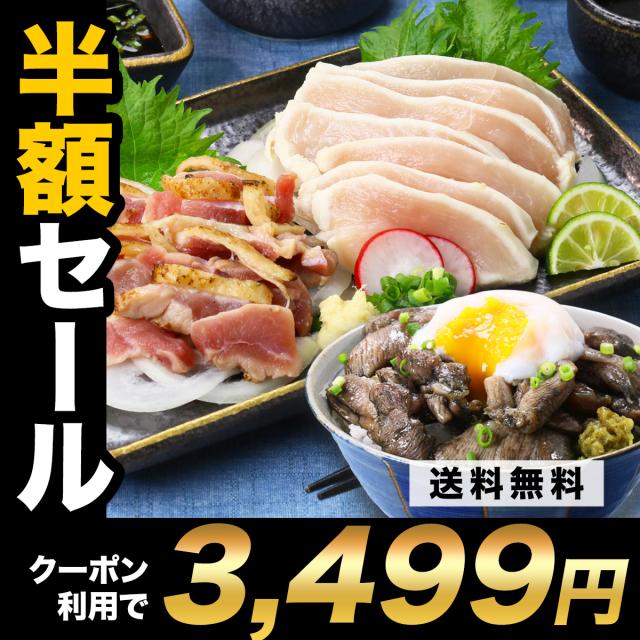 ★半額クーポンで⇒3,499円!★ ご購入で柚子胡椒プレゼント! 南九州の定番料理 鶏たたき 鶏刺し 【1】むね肉スライス210g×5 /【2】もも肉切り落とし120g×5 /【3】もも炭火焼き200g×5