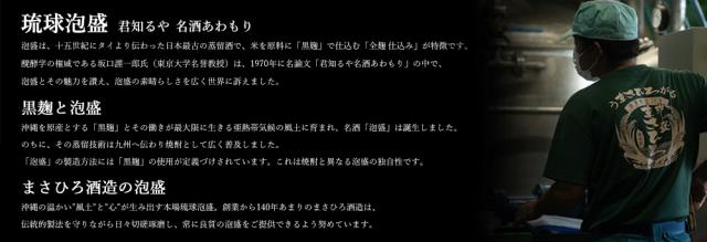 ![]() まさひろ酒造(旧 株式会社比嘉酒造)の歩み明治16年 比嘉酒造は、明治16年に琉球王国の城下町である首里で創業しました。創業者は、琉球王朝の料理長職をしていた比嘉昌続(ひがしょうぞく)の息子・比嘉昌文(ひがしょうぶん)です。 当時、泡盛造りは王府から許可をもらった者にしか製造が認められていませんでした。そんななか、創業者・昌文は料理人職の腕前を評価された父・昌続が王より授かった「ホウチュウヒガ」の屋号と泡盛製造免許のもと、泡盛製造を始めました。 沖縄の食文化と泡盛文化は密接な関係にあります。父・昌続の食へのこだわりは、昌文の酒造りにも反映したことでしょう。昭和24年 混沌とする時代の中、日中戦争の頃には最盛期を迎えた泡盛業界も、太平洋戦争でほとんどの蔵元が工場を失い、 受け継がれてきた古酒も戦火のなかに消えていきました。戦後の復興の中、三代目である昌廣(しょうこう)は本島南部の与那原に工場を移し、再スタートします。 ![]() 時はながれ、昭和54年、四代目として比嘉昌晋(まさくに)が蔵を引き継ぎます。ウイスキー全盛期の中、泡盛の市場開拓に努めました。その功績の代表的なものとして、「ふるさと小包」で泡盛を全国に発送できるシステムを作った事が挙げられます。当時郵便局がお酒は扱うことは画期的な事でした。また、初めて泡盛を国際品評会へ出品して金賞を受賞、他社に先駆けて泡盛ワンカップ、紙パック入り泡盛の発売を手掛けるなど、積極的に新しい市場を開拓してきました。 ![]() 創業100周年を記念した糸満市の西崎工場を落成し、製造場所を糸満市に移しました。ここでは、年代物の泡盛を展示した「泡盛まさひろギャラリー」を開設。泡盛についての資料を取り揃え、見学工場としてご好評いただいております。平成10年に発売した県外銘柄「島唄」、もろみを使用した「まさひろ もろみ酢」の商品化によって、新しい市場の開拓にも努めています。 | ![]() ■アルコール度数:30% ■内容量:720ml ■熟成:8年熟成古酒 時代はながれても変わらない、飲み継がれる酒!!琉球泡盛まさひろ!!沖縄の温かい“風土”と“心”が生み出す本場琉球泡盛!! まさひろ酒造の琉球王国の歴史と 文化を象徴する琉球最大の木造建造物「首里城」 をモチーフにした沖縄限定販売の泡盛!!首里城正殿シリーズ!!の8年熟成古酒!!首里城正殿黒!! 口当たり、柔らかい熟成した八年古酒に樽貯蔵の原酒 をブレンドし、味わい豊かな30 度の度数に仕上げられています!! 古酒の風味を存分にお楽しみ頂け、沖縄旅行の観光お土産としても喜ばれます!! |