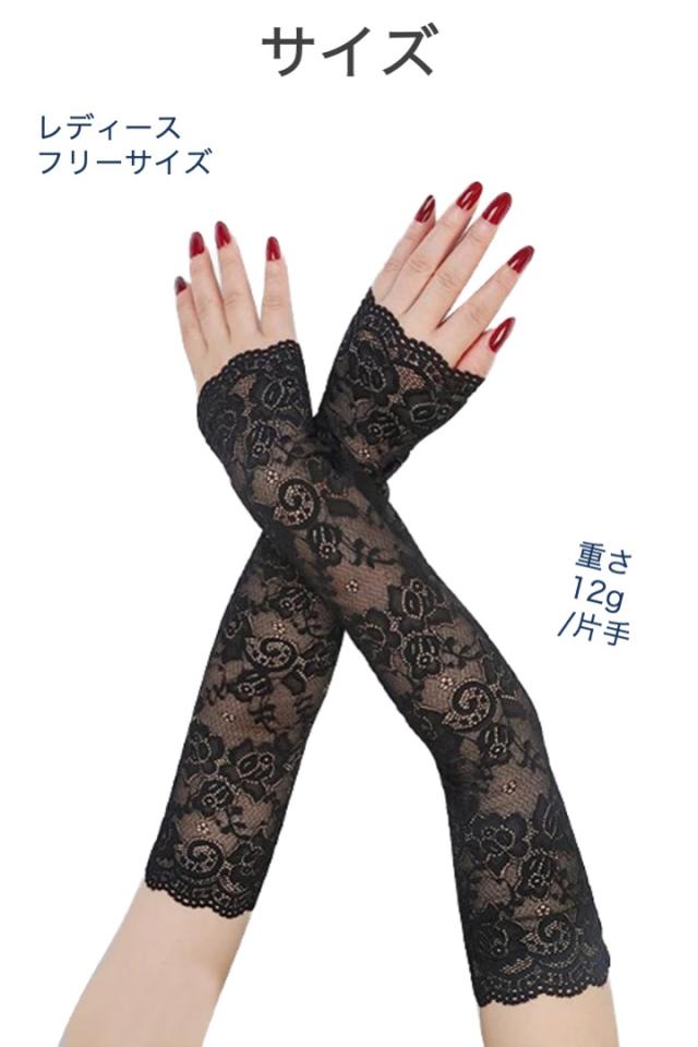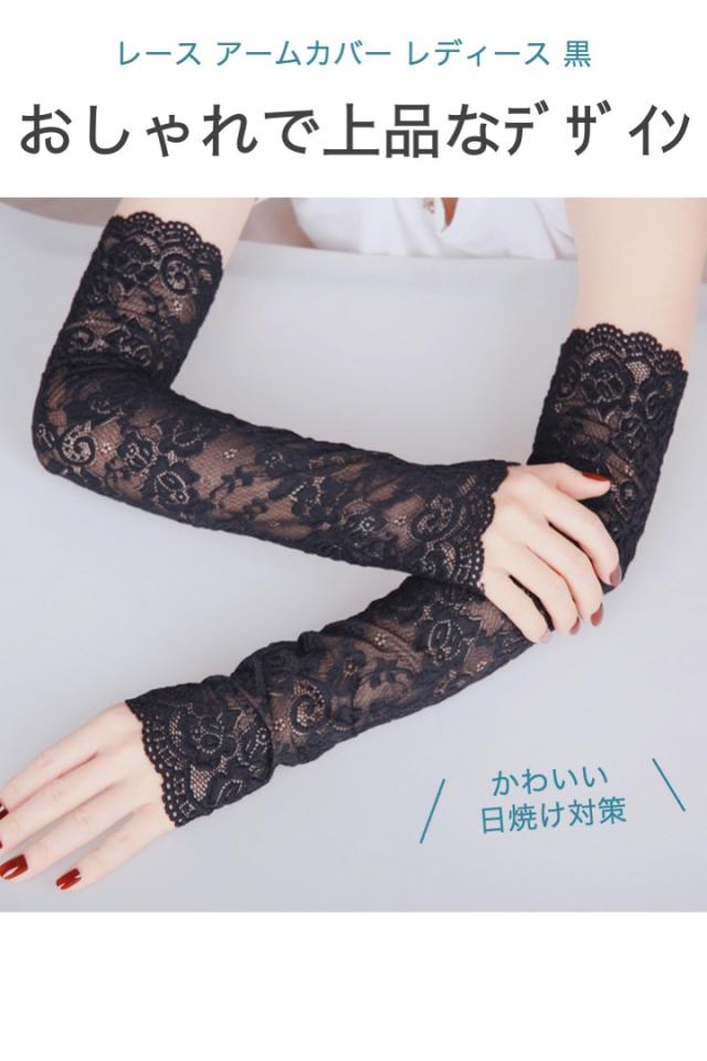 商品名:レースアームカバー レディース 黒 ロング シンプル デザイン 紫外線 UVカット 日焼け対策 自転車 車 肌触り 腕カバー 夏 日差し フリーサイズ 滑らか レース アームカバー