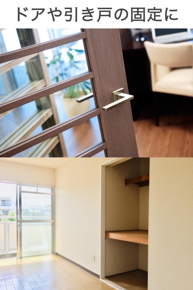 ドアの固定だけでなく、引き戸にも差し込み固定