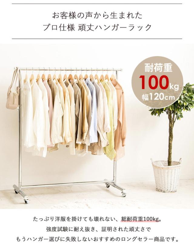 ハンガーラック キャスター付き 一人暮らし スリム 省スペース 幅120 おしゃれ 伸縮可能 シンプル 頑丈 耐荷重100kg 業務用 壊れない 衣類ハンガー 洋服掛け 衣類収納 コートハンガー 大容量(代引不可)【送料無料】