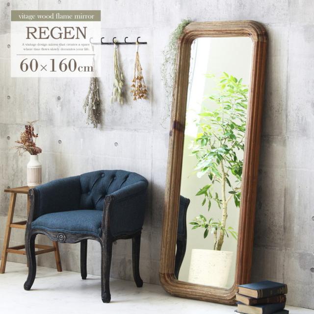 フレームにパイン古材を使用した、ヴィンテージスタイルな大型スタンドミラー・REGEN。