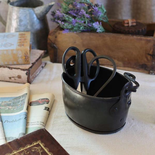 ブロカント アイアン オーバルバケツ ブロカント風なアイアンシリーズ登場! アイアンで作られた、オーバル型のバケツ。 落ち着いたマットなブラックでインダストリアルな味わいが楽しめます。 フックにハンドルをかけて吊るして使用することもできます。 造花や小物など入れてお使いください。 プランターとして使用する場合は別途容器をご使用ください ブロカントとは、フランス語で古物、古道具という意味。 ヨーロッパでは物を大事に長く使う文化があり、大事に使われた古道具は次第に味のある風合いに。 ※水を入れて使用することはできません。 生産地 インド サイズ 約W17×11×H11cm