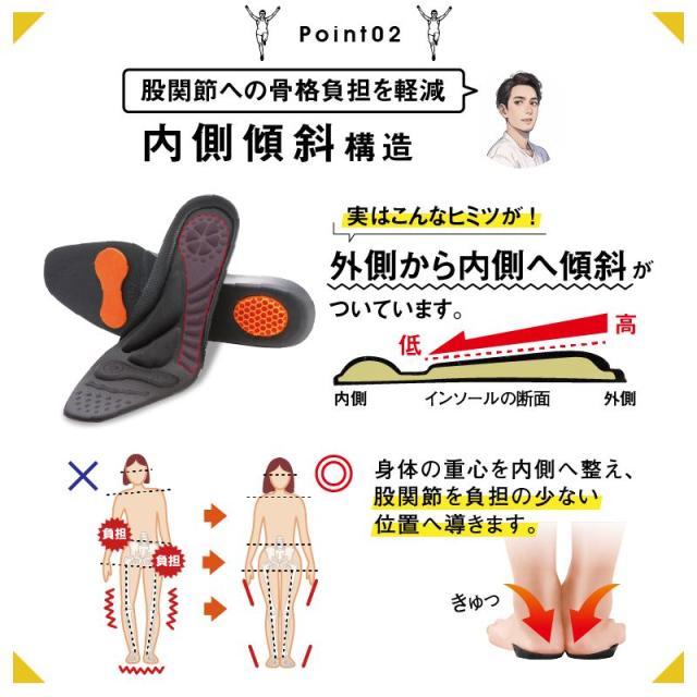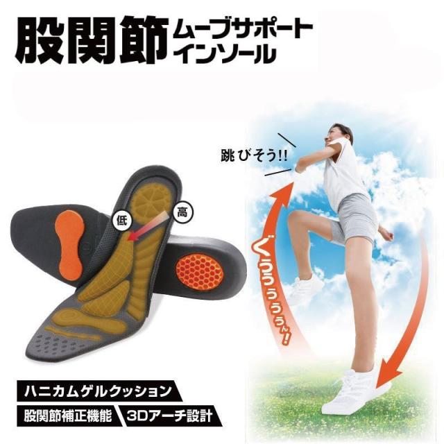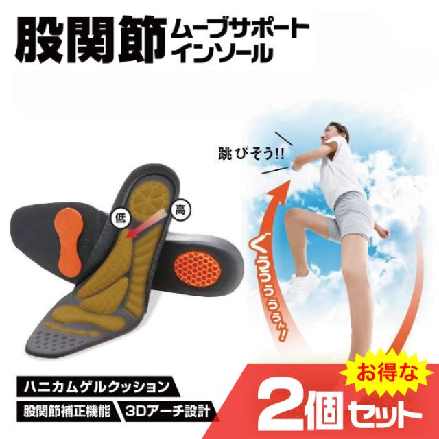 股関節ムーブサポートインソール 2個セット 衝撃吸収 足裏アーチ 腰痛 内側傾斜構造 正しい姿勢 指滑り防止 簡単 姿勢 補正
