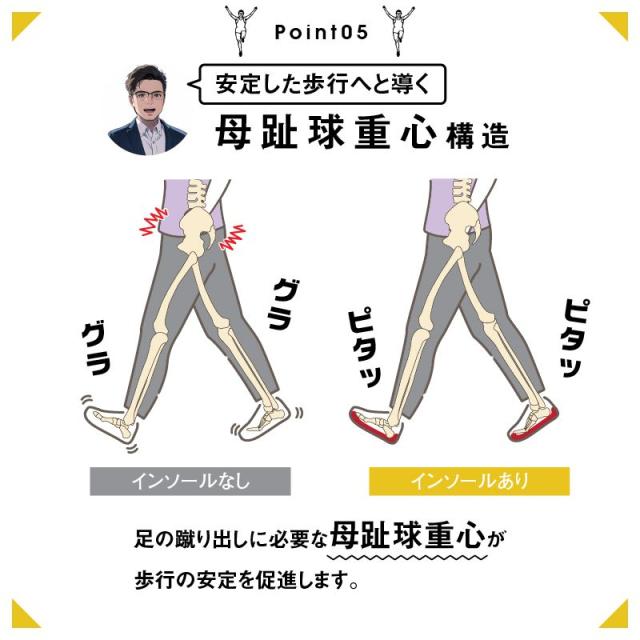 母趾球重心構造で足の蹴り出しに必要な母趾球重心が歩行の安定を促進