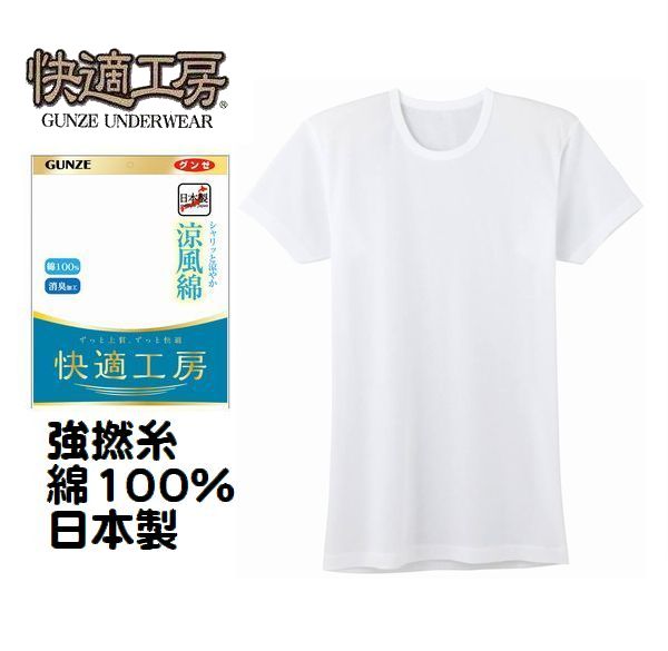夏素材 涼風綿 グンゼ 紳士 肌着 半袖 丸首 シャツ 強撚糸 快適工房 メンズ インナー 下着 夏用 さらさら 消臭加工 綿100% 日本製 6414