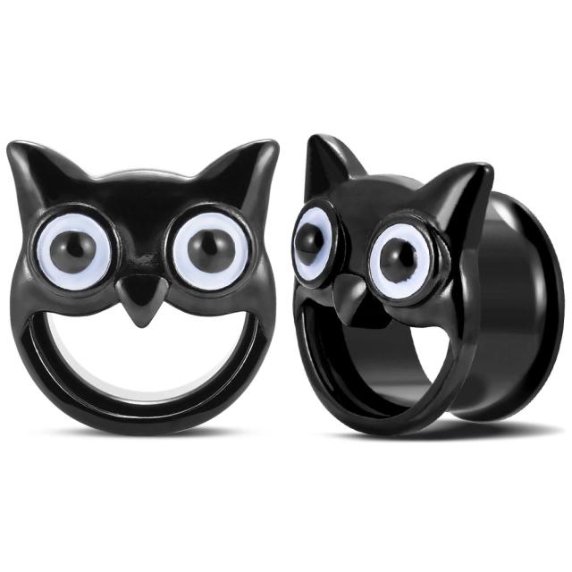 黒色のまるで悪魔のような梟(フクロウ)をモチーフにしたダブルフレア型のボディピアス。