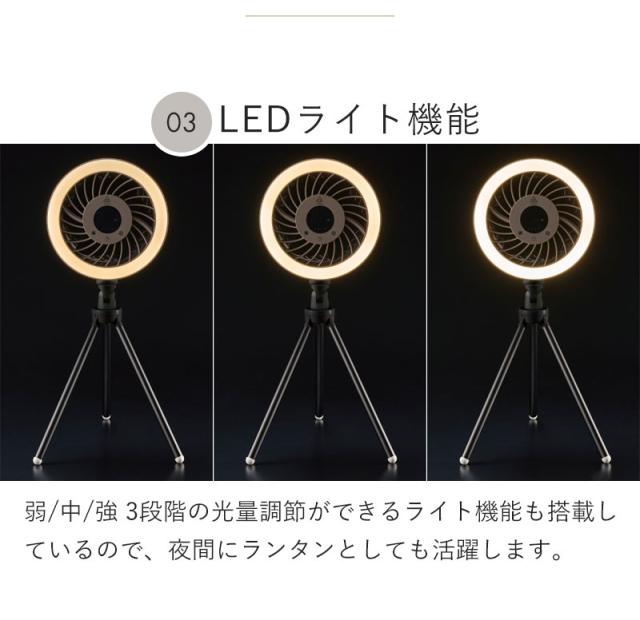 サーキュレーター USB充電 LEDライト 吊り下げ 扇風機 LED照明 アウトドア 屋外 テント ランタン ライト 風量3段階 ミニファン 熱中症対策 衣類乾燥 エアコン 併用 タイマー オフ 空気循環 首振 送風 換気 撹拌 かくはん 部屋干し 室内干し 充電 バッテリー 節約 省エネ