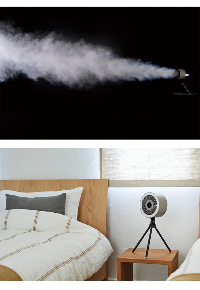 三脚が取り外し可能で吊り下げ使用できるポータブルサーキュレーター。
