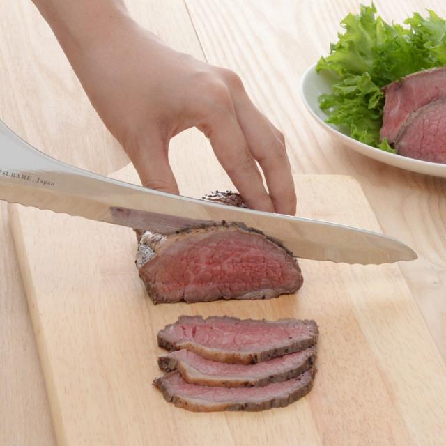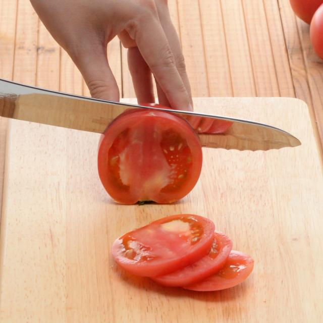 パンはもちろん、切りづらいトマトやお肉などの様々な食材もスパッと切ることができます。刃渡りが長いので、大きな野菜のカットにも向いています。