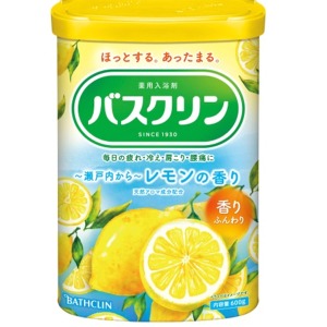 (▼3980円以上送料無料(但し沖縄県・.離島は送料負担がございます。)弊社では、当日発送は対応しておりません。) バスクリン レモンの香り 600g 入浴剤はさわやかなレモンの香りで気分すっきり 瀬戸内のレモンから抽出したエッセンシャルオイル配合の入浴剤です。アロマのツブ2倍UPし、フレッシュ感しっかり長続き 透明黄色系湯色 「肌当たりまろやか」、オーガニック認証ホホバ油新配合(保湿成分)。アミノ酸成分で水道水中の塩素を除去。「医薬部外品」 【4548514153110】