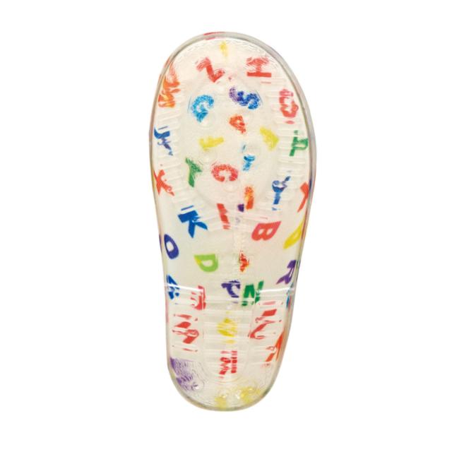 アウトソールが透明で、底面にも柄が描かれているので、どこから見ても柄が見えます。