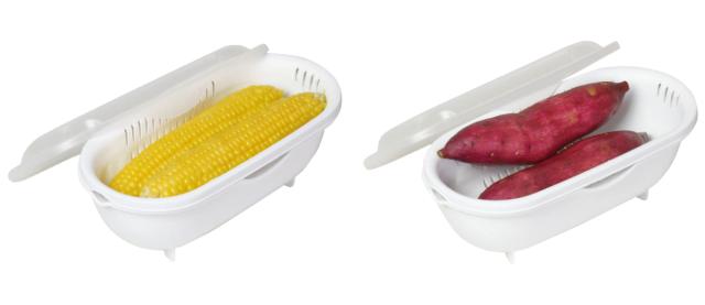 電子レンジで簡単に茹でたトウモロコシ・蒸したサツマイモを作れます。フタがドーム型で大容量なので、まるごと加熱できます。お湯を沸かす手間がなく、ちょっと食べたいおやつの時などにぴったりです。