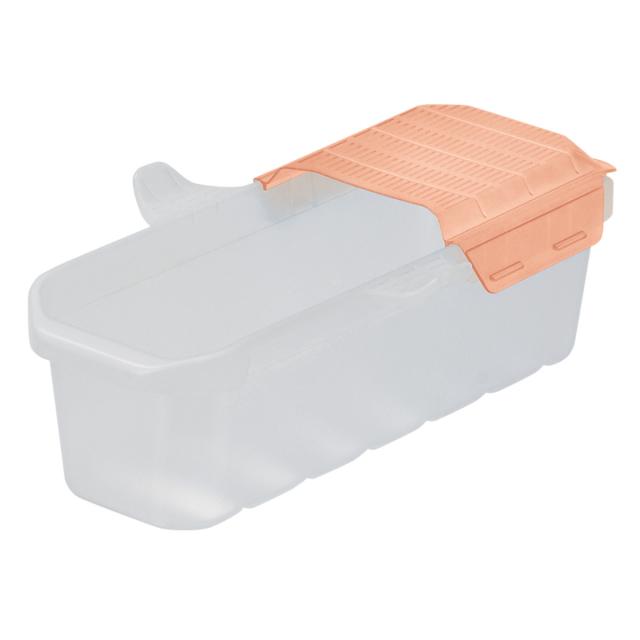 フタはメッシュ水切り付きなので、電子レンジから取り出してそのままお湯を切ることができます。着脱可能な2点ロックで、洗いやすく衛生的です。