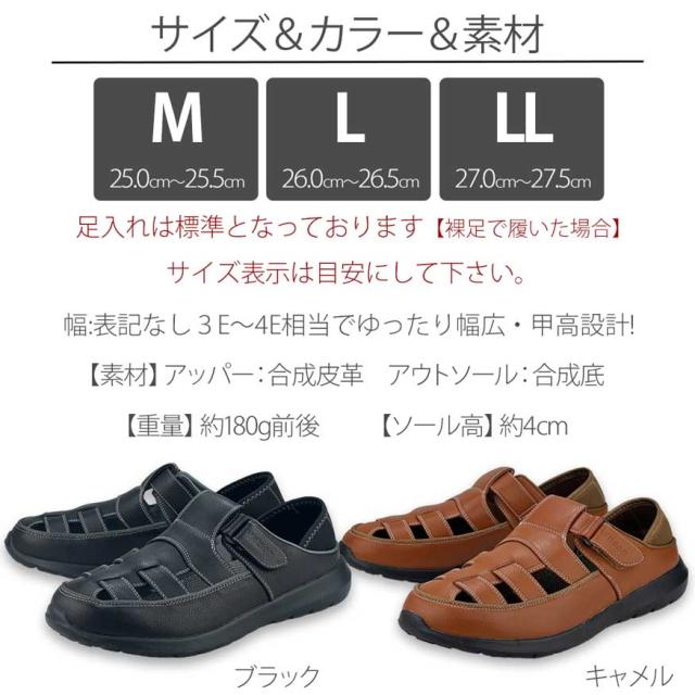 | 【サイズ】 | ◆Mサイズ (約25.0m〜25.5cm) ◆Lサイズ (約26.0cm〜26.5cm) ◆LLサイズ (約27.0cm〜27.5cm) ヒール高:約4.0cm |