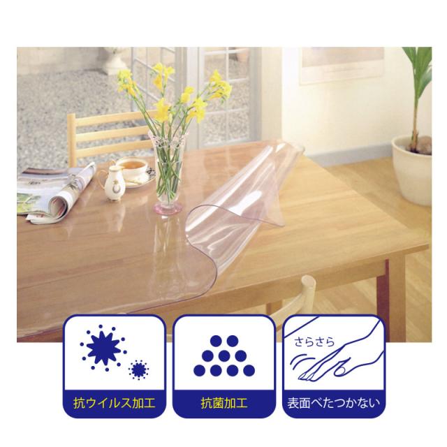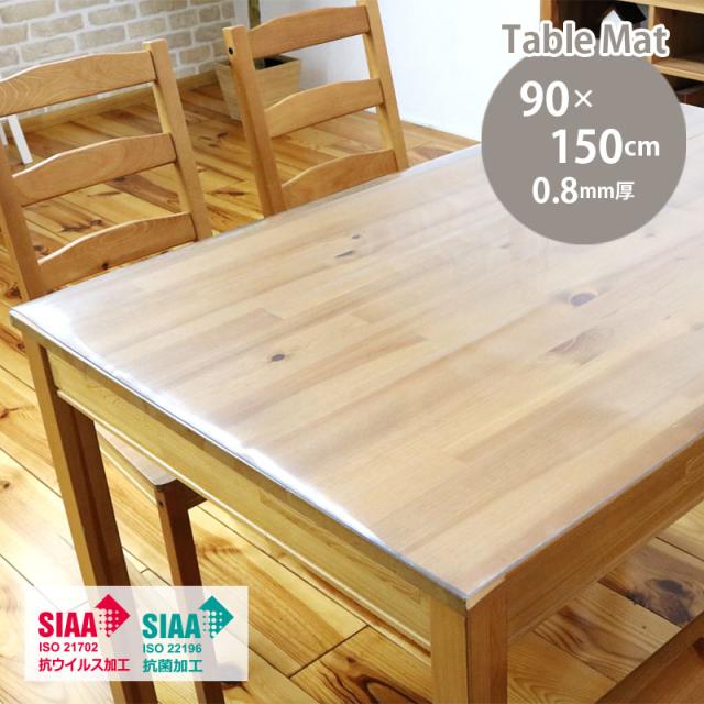 透明 テーブルマット テーブルカバー 機能付き 6人掛け 90cm×150cm 0.8mm厚 テーブルクロス デスクマット 汚れ防止 防水 撥水 防汚 キズ防止 SIAA 抗ウイルス 抗菌 さらさら ベタつかない シンプル クリア ビニールクロス テーブル保護 日本製 送料無料 VKSKT-9015 176130