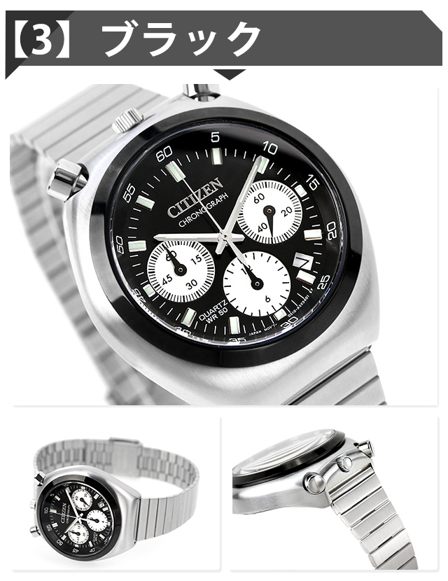 正規品 7年保証キャンペーン 送料無料 シチズン コレクション レコードレーベル ツノクロノ パンダ クロノグラフ クオーツ メンズ レディース 腕時計 CITIZEN RECORD LABEL TSUNO CHRONO アナログ 黒 選べるモデル ◆シチズン初の本格クロノグラフ機能付き時計として1973年に登場した「クロノグラフ チャレンジタイマー」をアップデート。ケースの12時側に配置されたプッシュボタンがツノのように見えることで、「ツノクロノ」の愛称で呼ばれてきたアイコンモデル。ケース12時側のりゅうずとプッシュボタンが特徴。セオリーから外れたバランスが個性を際立った、やわらかなケース形状とシャープなベゼルが調和する絶妙なデザインに仕上がってます。また、手首に心地よく収まるサイズ感もポイント。男女問わずお使いいただけ、ペアウォッチとしてもおすすめです。カジュアルスタイルからスーツやコートなど、どのコーディネートにも合わせやすく、オン・オフ問わずお使いいただけます。 AN3660-81A AN3660-81L AN3660-81E シチズンコレクション