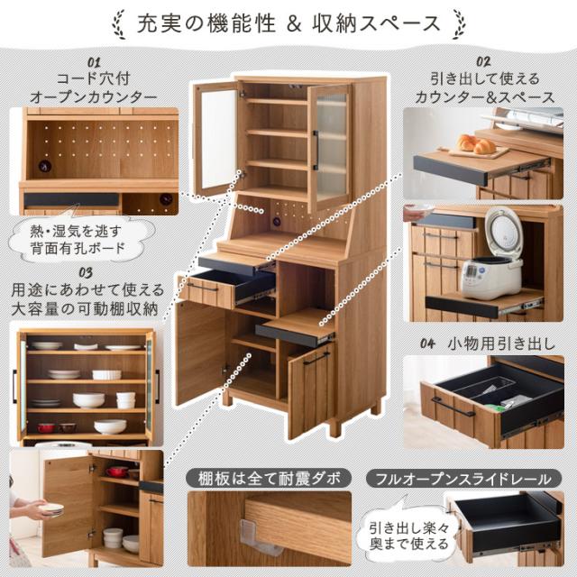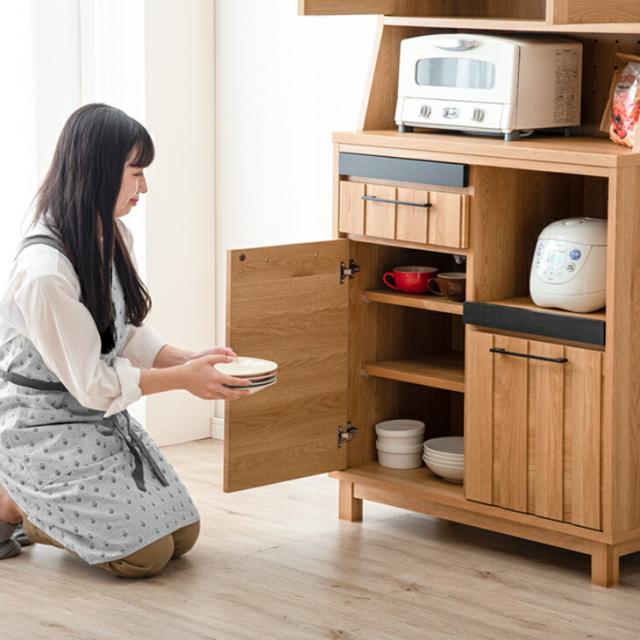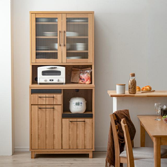 キッチンラック 幅80 カントリー調 大容量 大川家具 完成品 引き出し 組み立て不要 奥行き40 炊飯器 キッチンボード 木製 カントリー おしゃれ 食器棚 キッチン収納【超大型】【後払いNG】