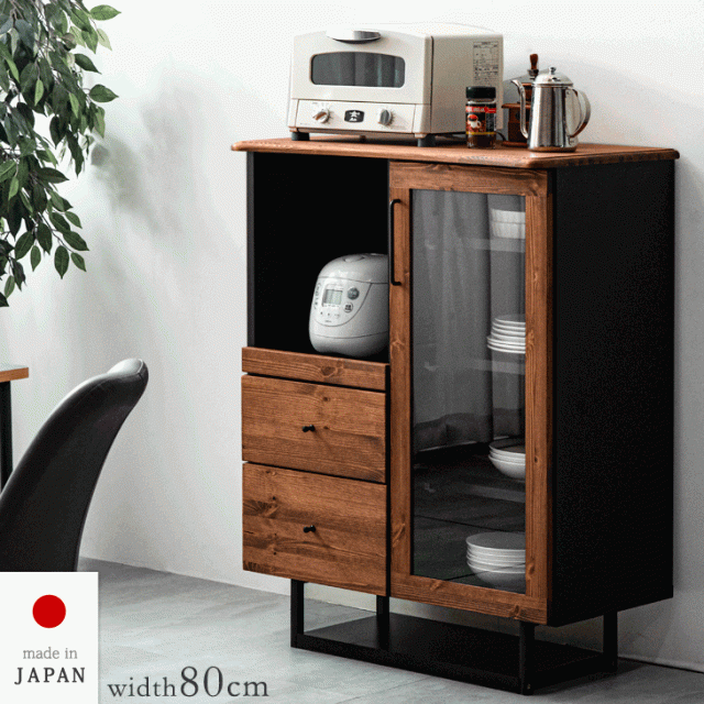 日本製 食器棚 完成品 80幅 キッチン収納 レンジ台 キッチン 収納 スリム 棚 キッチンラック レンジラック