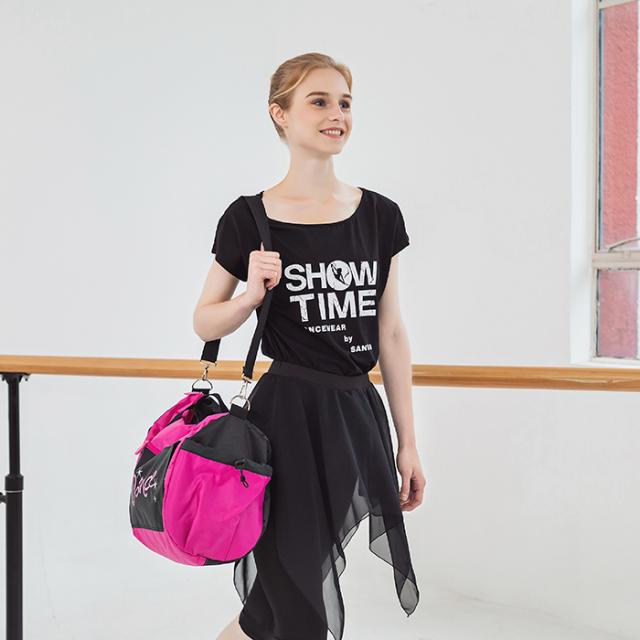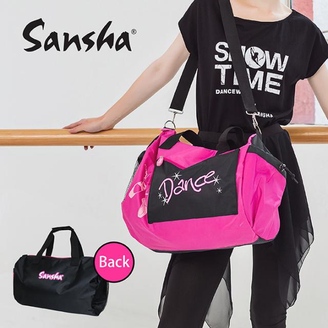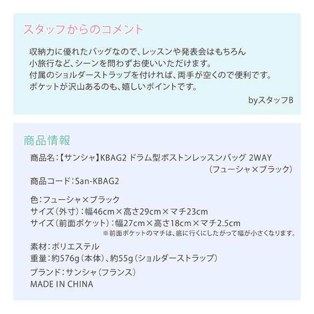 【20%off・在庫特価】【サンシャ】KBAG2 ドラム型ボストンレッスンバッグ 2WAY (フューシャ×ブラック)バレエ レッスンバッグ 子供 子ども ジュニア 大人 おしゃれ バレエ用品 大容量 かばん 衣装バッグ 発表会 コンクール 練習 レッスン