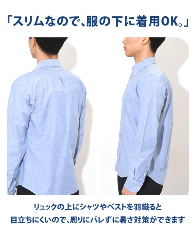 リュックの上にシャツやベストを羽織ると目立ちにくいので、