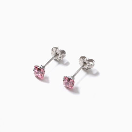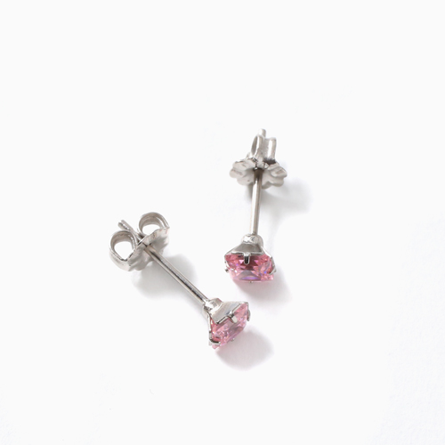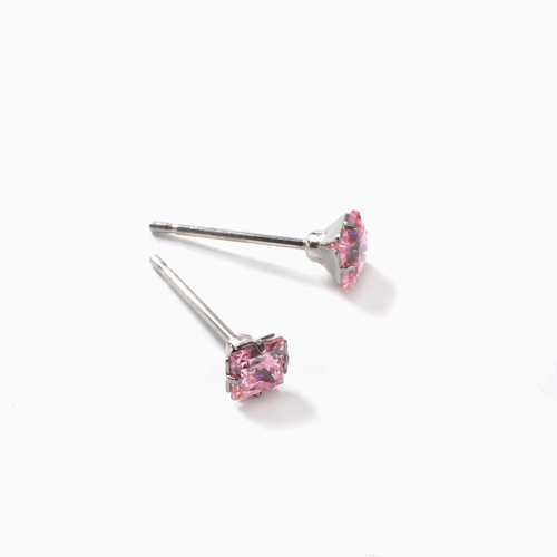 スワロフスキー ピアス 純チタン ダイヤモンドカラー 4mm プラチナ イオンコーティング プリンセスカット ピンク ダイヤモンドカラー クリックポスト便対応