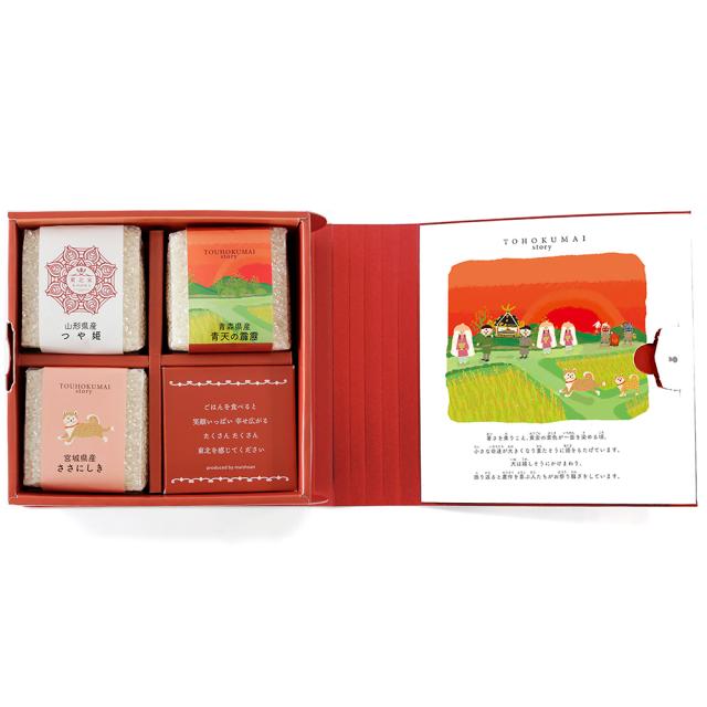 MAIstoryとは、『各地域のお米(MAI)がすくすくと育ち、食卓に届くまでの四季折々の情景を想像して楽しんでいただきたい』そんな想いを込めた商品です。東北地方から厳選の3銘柄をお楽しみください。