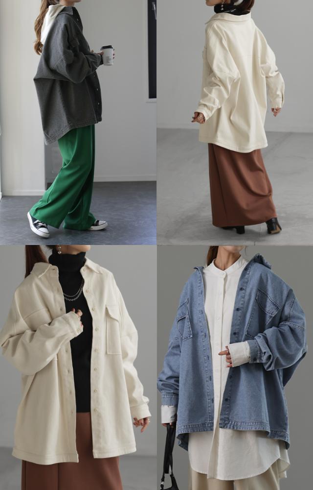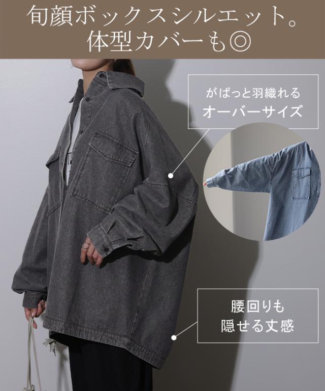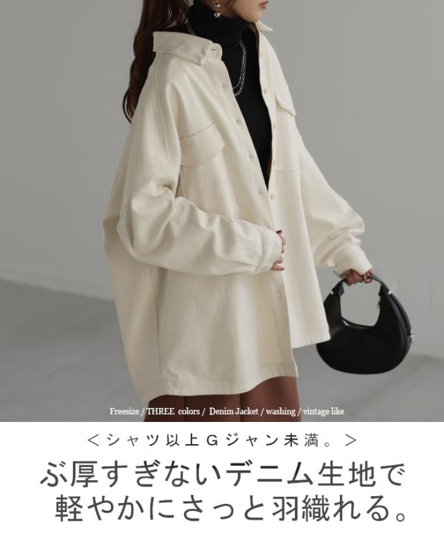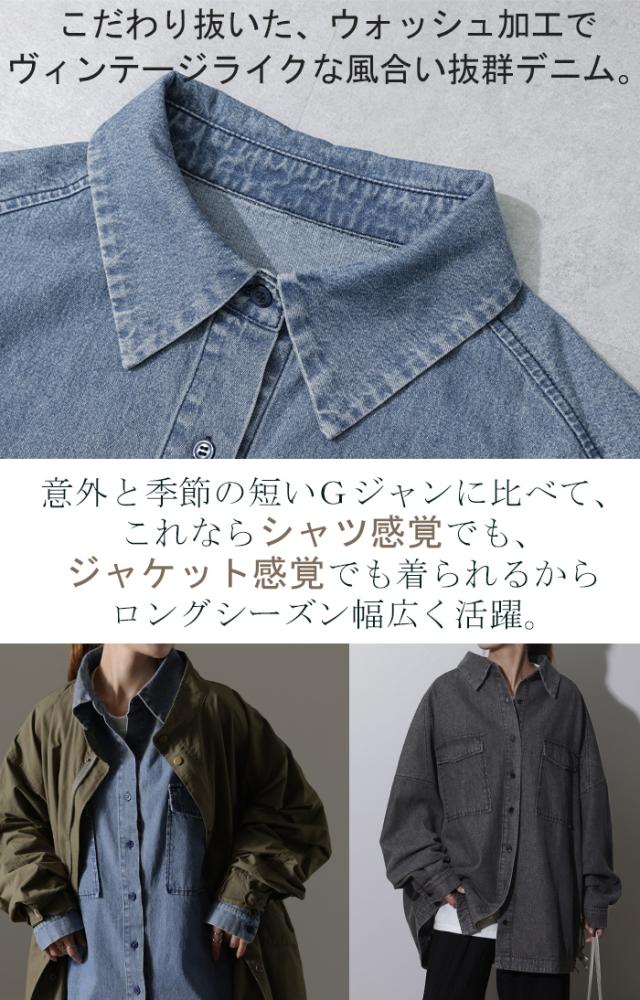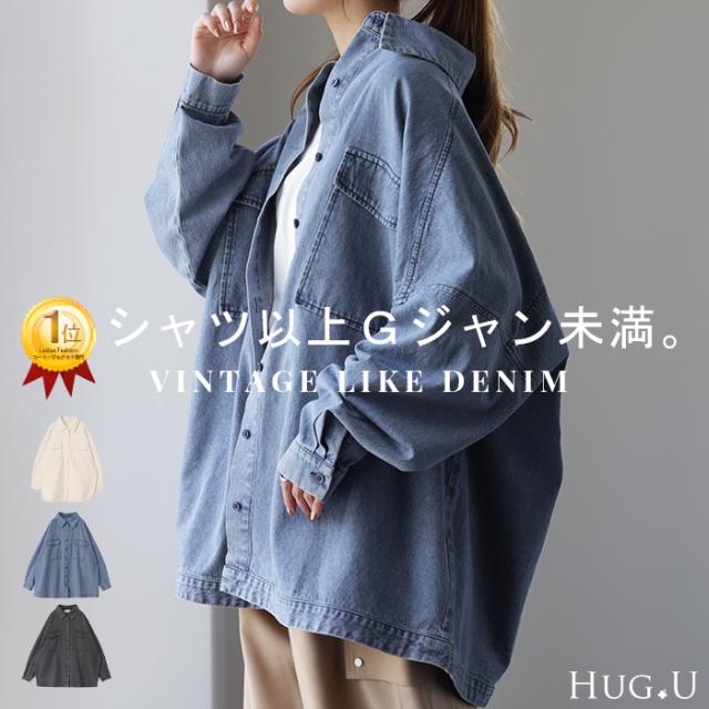 Gジャン 未満「 絶対理想 」 デニムシャツ オーバーサイズ アウター デニムジャケット レディース 抜き襟 デニム トップス ジャケット ブルゾン ライトアウター 体型カバー 大きいサイズ 長袖 羽織 シャツ ダメージ ジーンズ 春 HUG.U 秋新作