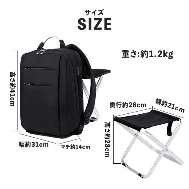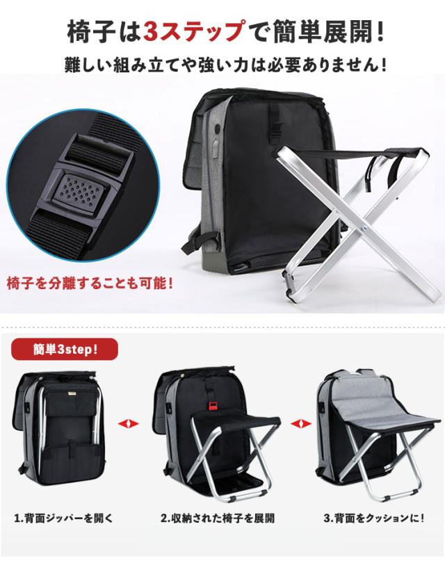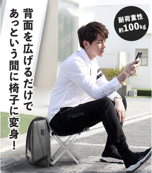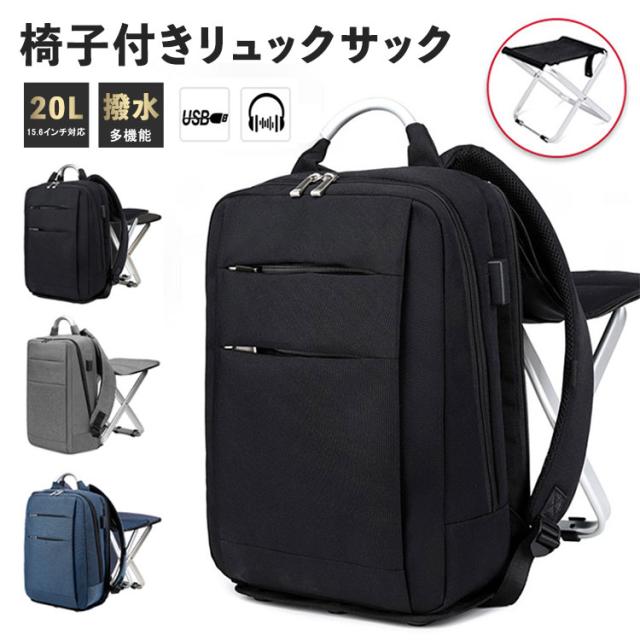 リュックサック 椅子付き レディース メンズ 大容量 持ち運び 椅子になる USB 充電 リュック イス付き 撥水 折りたたみ ノートPC 15.6インチ 旅行 多機能 20L バック アウトドア 登山 バイク 自転車 通勤 通学 大学生 社会人 高校生 中学生 送料無料