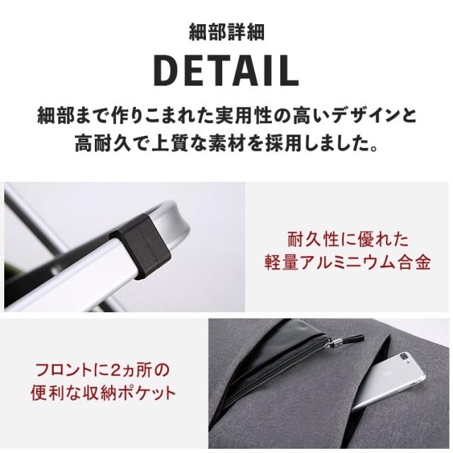 チェア部分には軽量アルミニウム合金を採用。最大荷重約100kgまで耐えられる設計で安心です。
