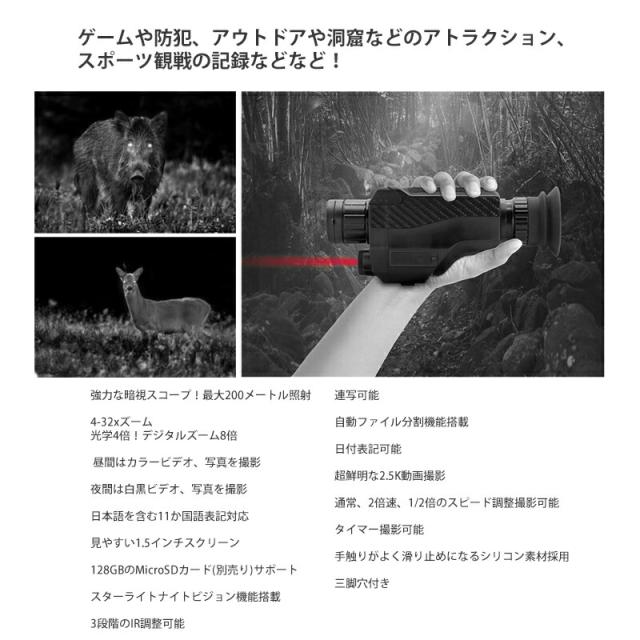 暗視スコープDX AS-C01 IRスコープ 暗視 光学4倍ズーム 日本語表記 動画 写真 2.5K ![]() ![]() | ||||