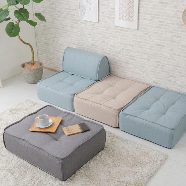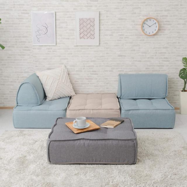 背もたれと座面が分かれたマルチクッションの座面「フロアクッション」です。お好みやシーンに合わせて自由にレイアウトすることができるので、限られたスペースでもソファのようにくつろぎたい、という方におすすめです。