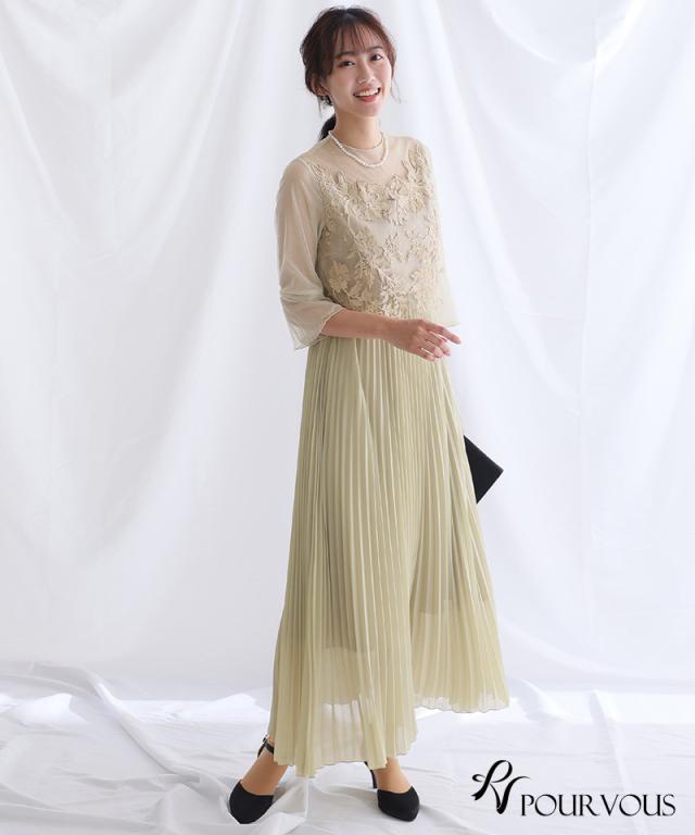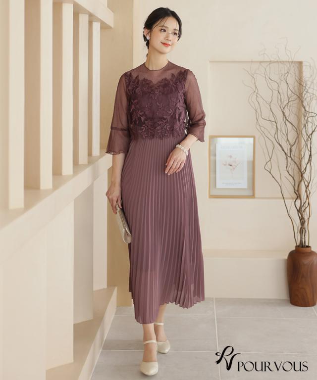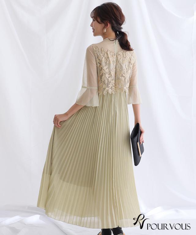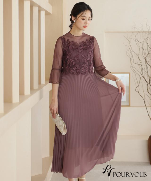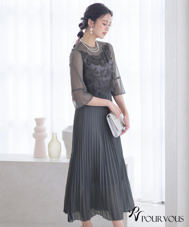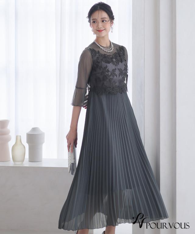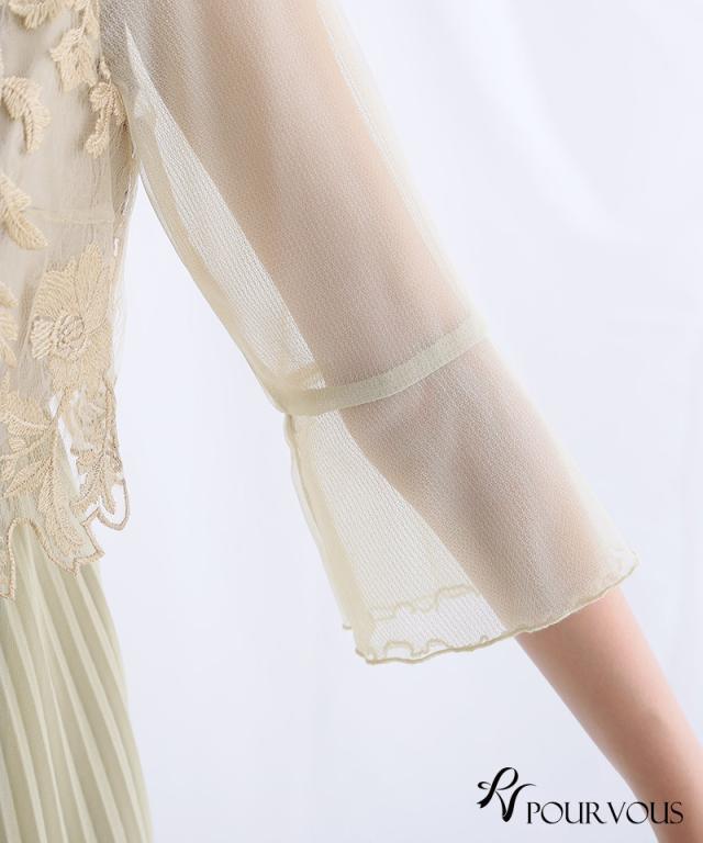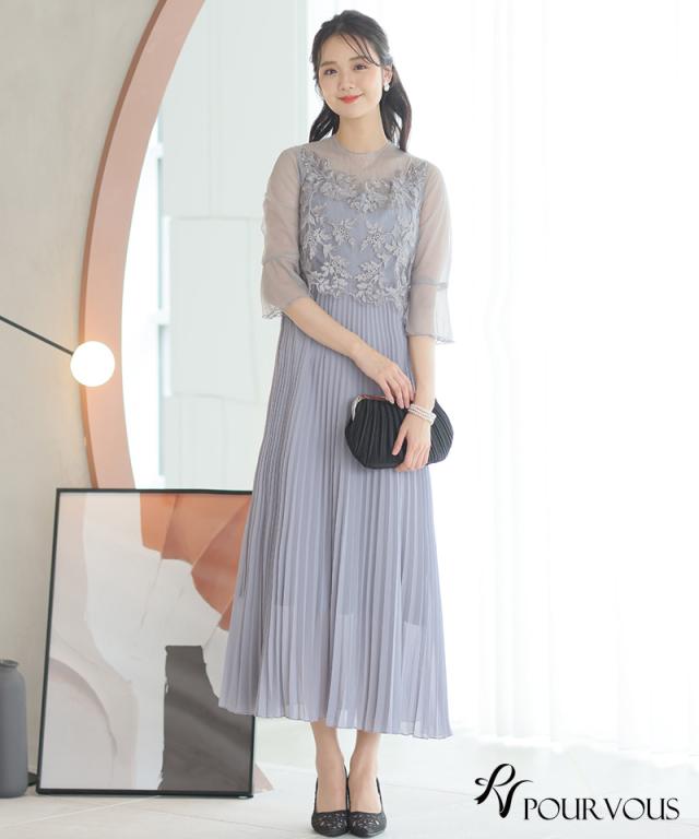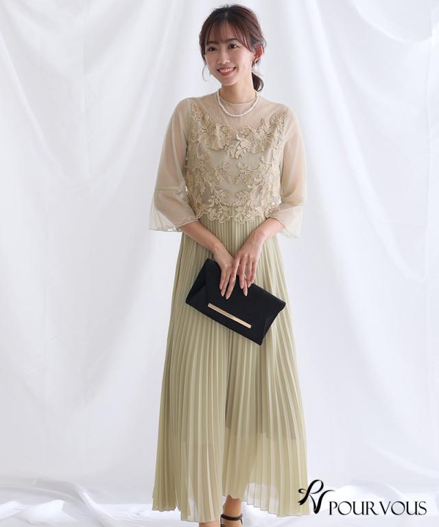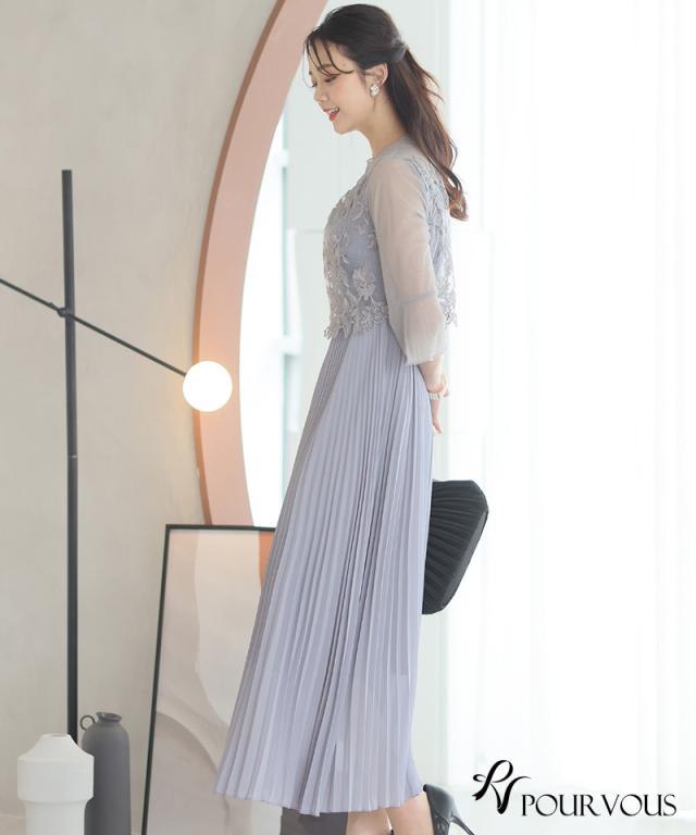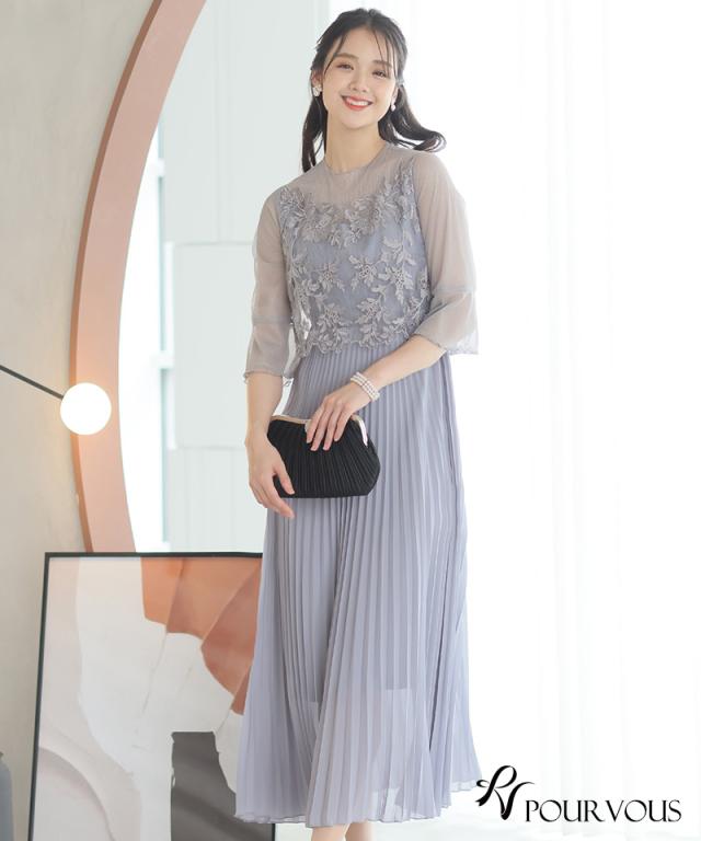 刺繍レースとラメチュールが華やかなワンピース
