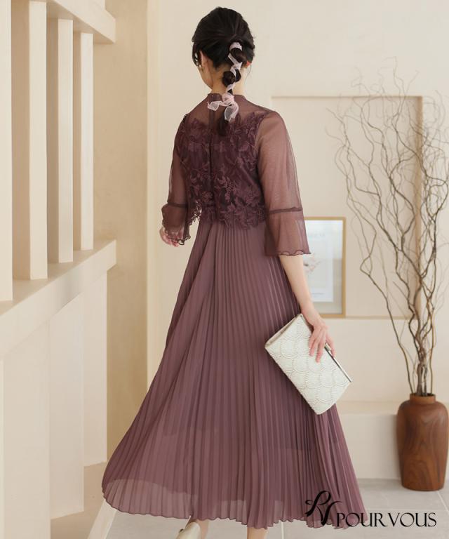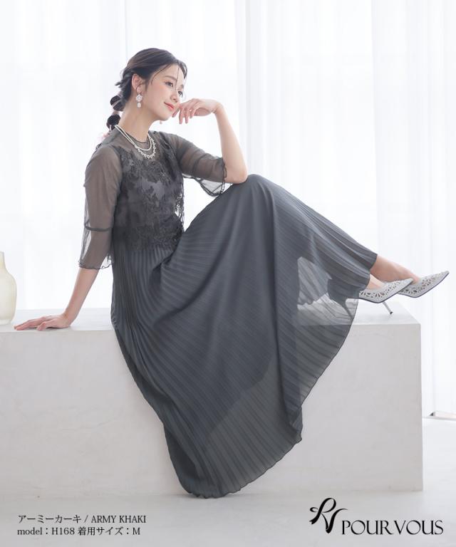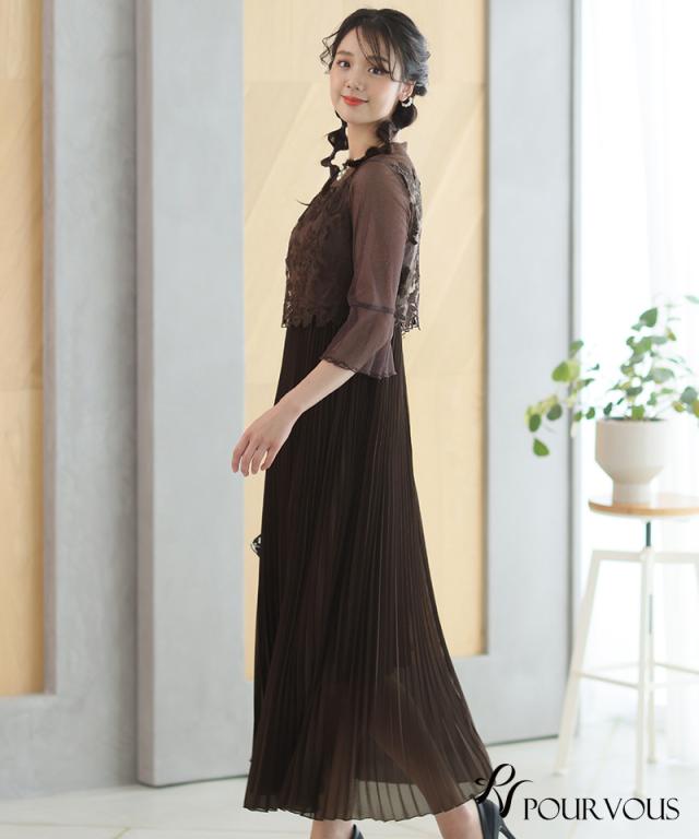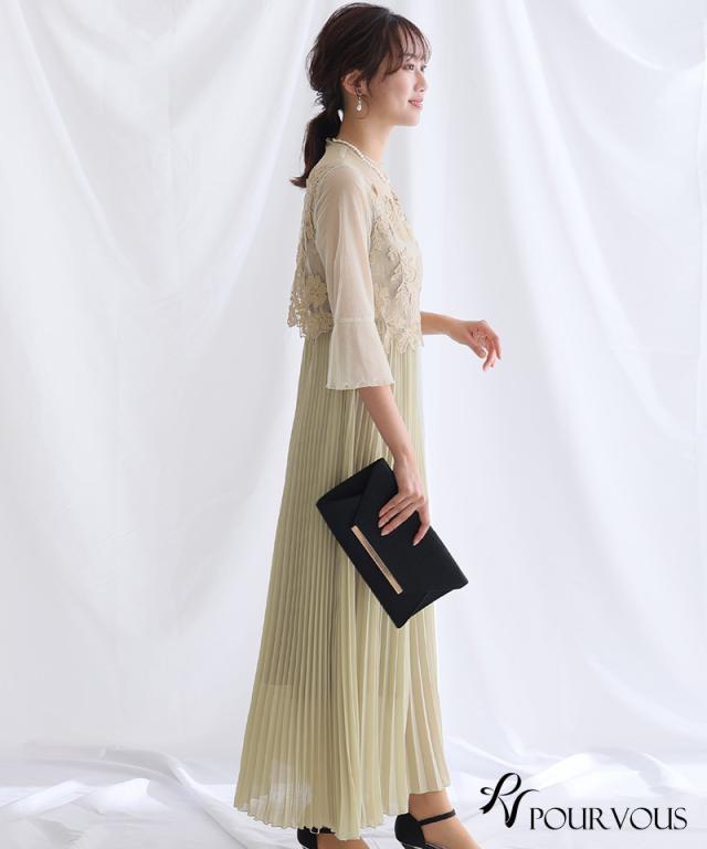 ラメチュールスリーブプリーツドレス【721231425】20代・30代・40代・54代長袖・膝丈・セットアップ・スカート・体型カバー・ジャケット・テーラード・スーツ・大きいサイズなど・即日発送・送料無料結婚式・婚活・披露宴・顔合わせ・二次会・同窓会・お呼ばれ・食事会・謝恩会・親族・七五三・お宮参り・冠婚葬祭・弔事・女子会・デート・入学式・卒業式・入園式・卒園式・ママ・マタニティー・セレモニー・セレブ・パーティー