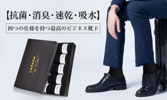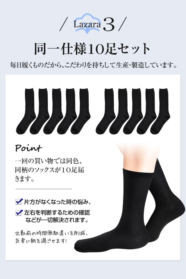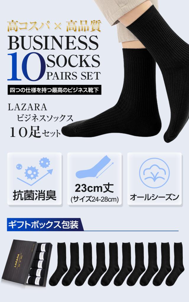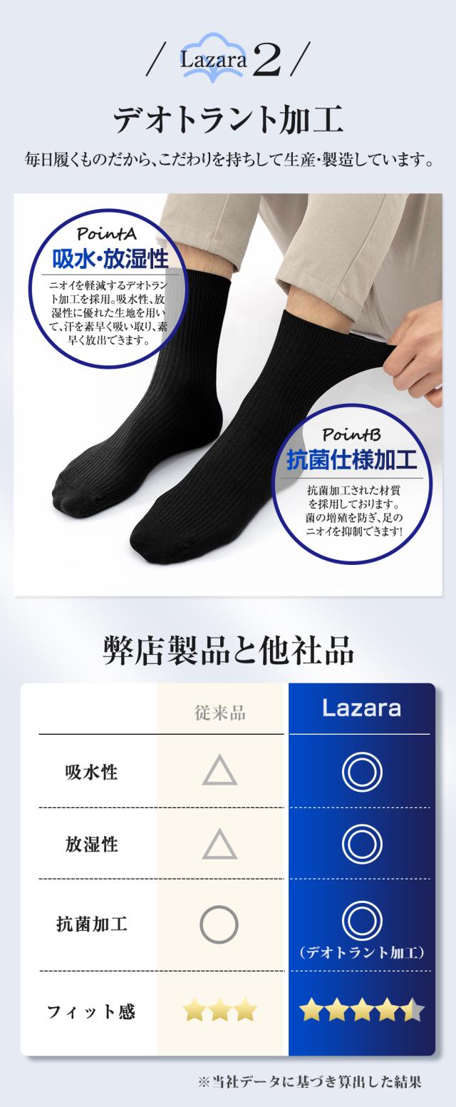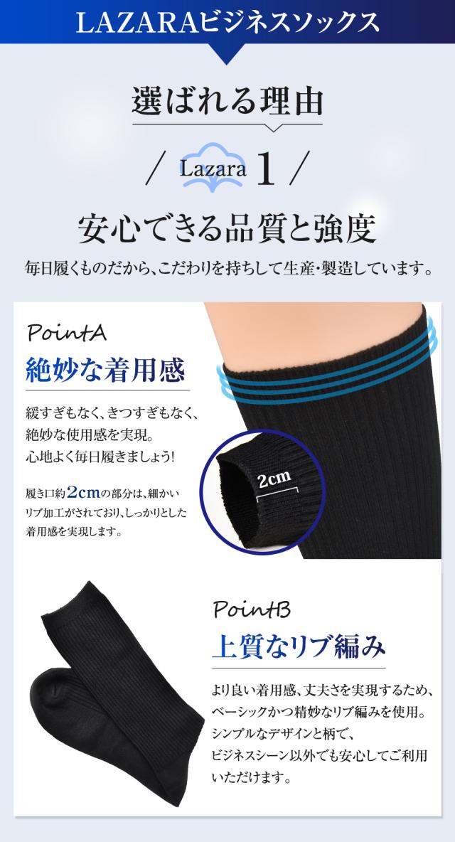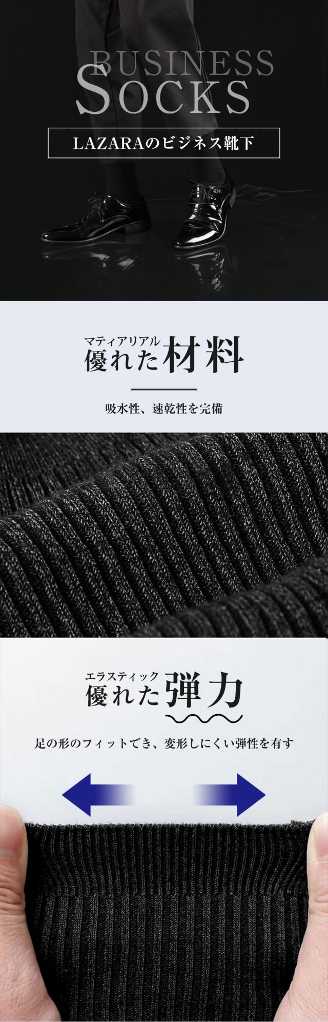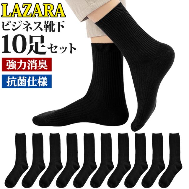 靴下 メンズ靴下 ソックス メンズ ビジネスソックス 紳士ソックス 黒 抗菌防臭 抗菌 防臭 消臭 吸汗性 吸湿 無地 シンプル LAZARA リブ編み メンズソックス ビジネス靴下
