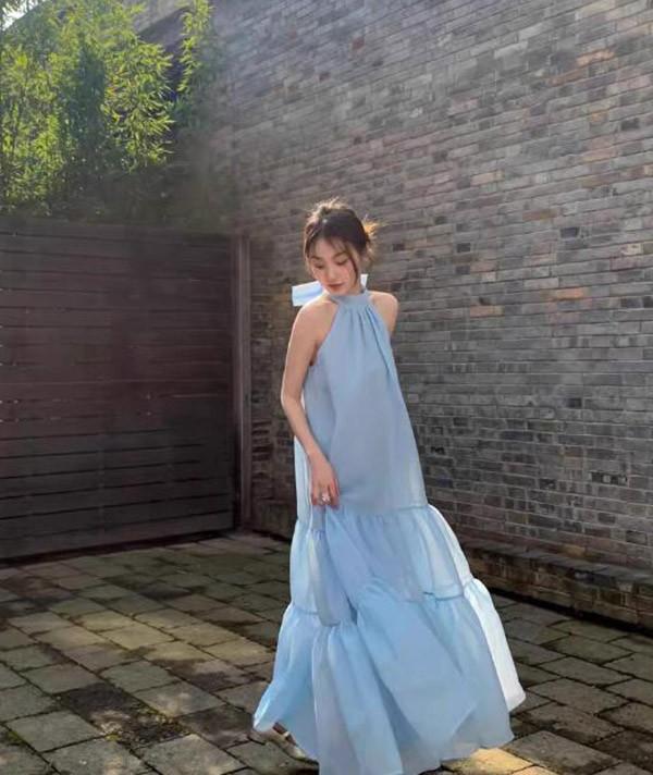 【商品名】ワンピース ノースリーブ 大人かわいい リゾートワンピース 夏ワンピ エレガント 着やせ Aライン ブルー bi155zezel9