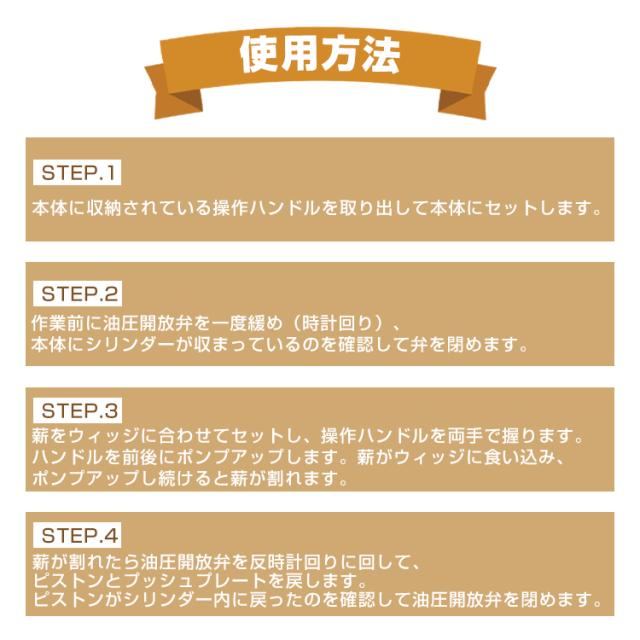 【商品内容】:手動式油圧薪割り機