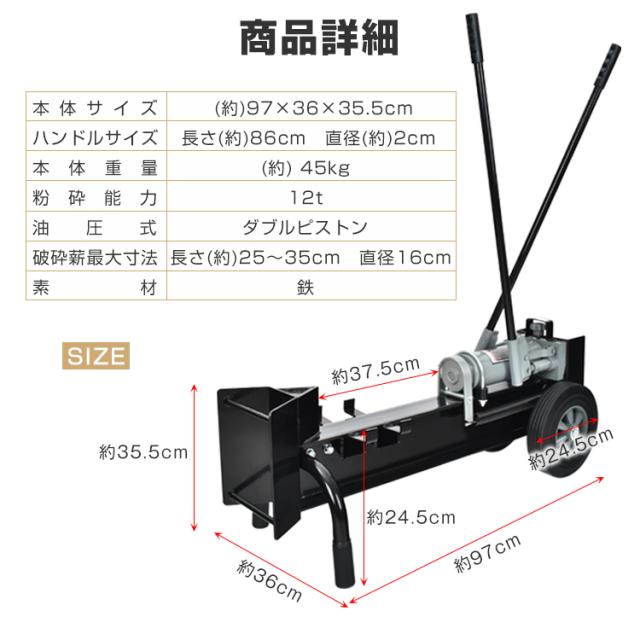 手動式油圧薪割り機 12t パワフル 手動 油圧式 直径160mmまで対応 ノーパンクタイヤ 電源不要 強力 ダブルピストン 静音 家庭用 薪ストーブ 暖炉 焚き火 sg038