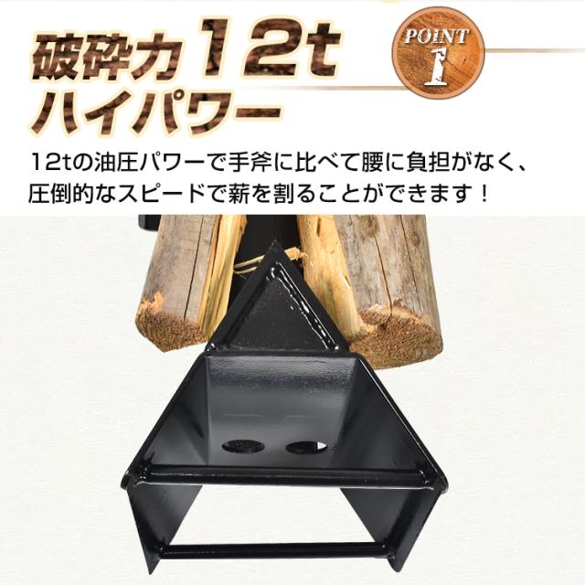 ■12tの圧倒的破砕力で、楽に薪割りができます。