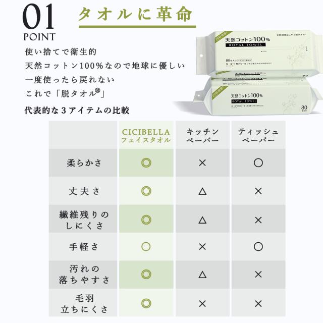 ロイヤルタオル フェイスタオル クレンジングタオル 80枚入x3 フェイシャルタオル CICIBELLA 保湿 洗顔タオル 使い捨てタオル 天然 コットン 敏感肌 洗顔 化粧