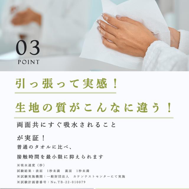生地の凹凸を無くすことで、肌の細かい凹凸にある水分を過剰に吸水せず、肌の潤いを保つ。