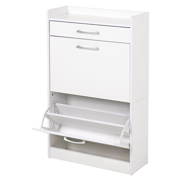 シューズラック 下駄箱 約幅62×奥行24×高さ99cm ホワイト フラップ式扉 引き出し付き 大容量 大型 お客様組立品 玄関 エントランス 白 送料無料