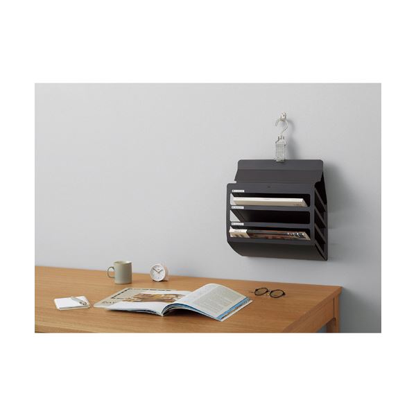 ●「フックに吊るして使える壁掛けタイプ」壁面を有効活用し、書類、小物類の整理だけでなく、回章書類など職場内での情報伝達にも役立ちます。